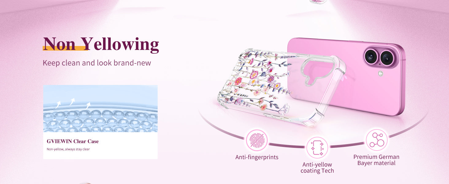 Crafted with a high-quality anti-fingerprint coating to reduce smudges and keep the case clean and clear. Upgraded anti-yellowing materials ensure long-lasting transparency, preserving your phone’s original beauty and extending the case’s durability over time.