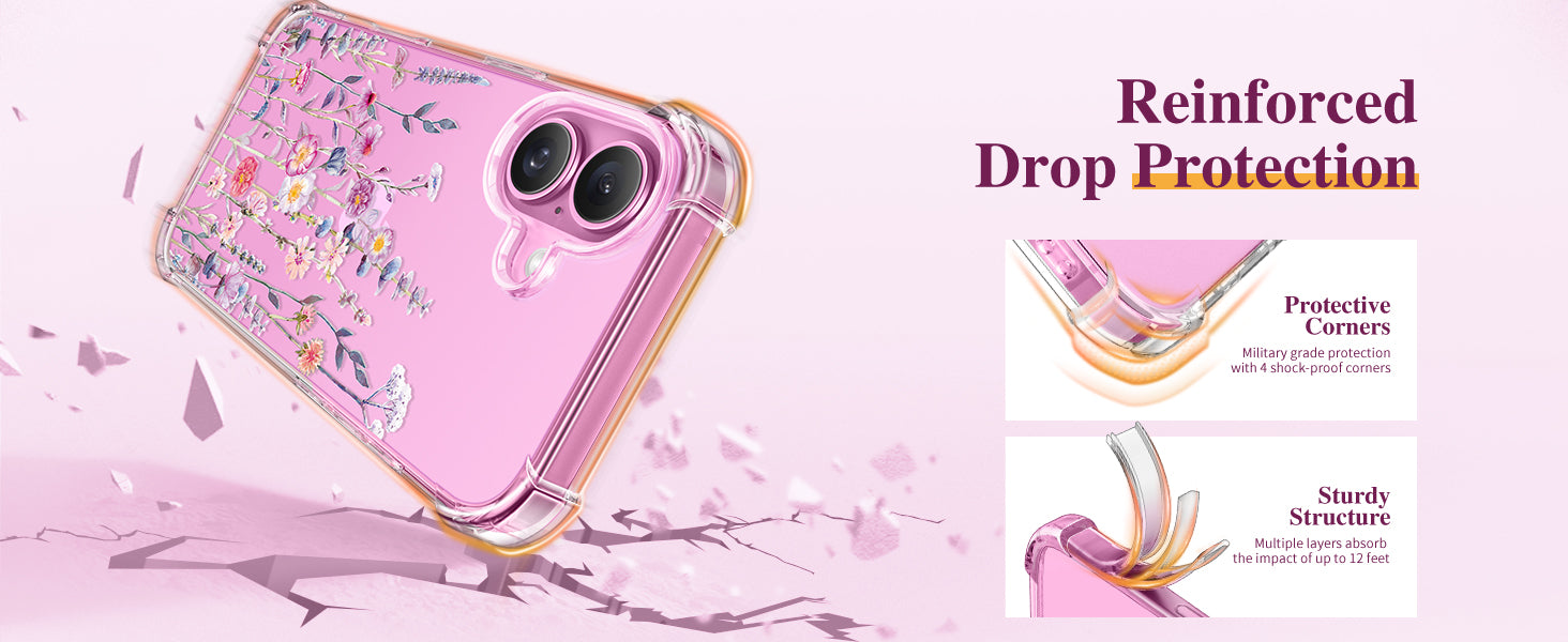 Clear Floral Pattern Slim Soft Shockproof Women Girls Phone Cover for 16 Plus Case